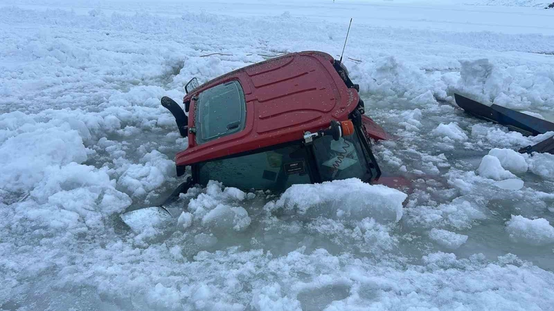 Ardahan’ın Çıldır ilçesindeki yüzeyi buz tutan Çıldır Gölü üzerinde kar temizleme çalışması yapan bir traktör, buzun aniden kırılması sonucu sulara gömüldü. Olayda sürücü, son anda kurtarılarak güvenliğe alındı.