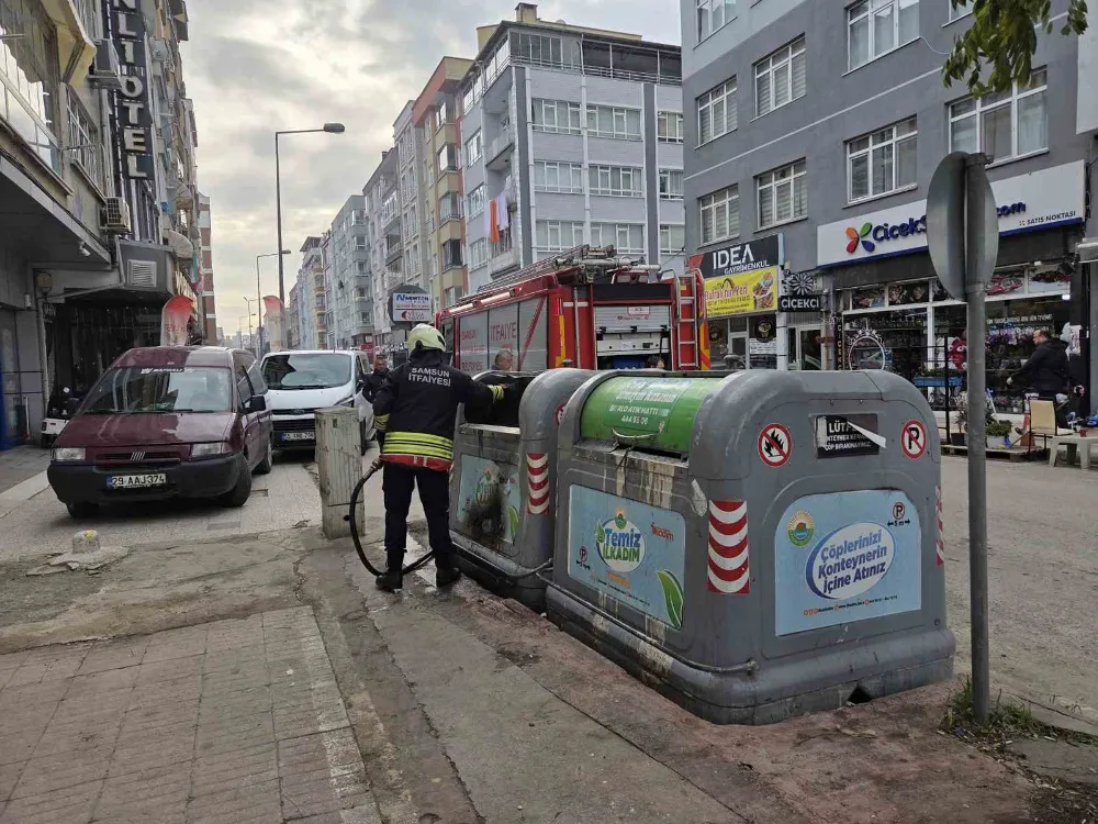 Samsun’un İlkadım ilçesinde meydana gelen çöp konteyneri yangınını, itfaiye ekipleri söndürdü.