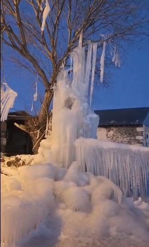 Patlayan hattan fışkıran su, hava sıcaklığının sıfırın altında seyretmesi nedeniyle hızla dondu. Kısa sürede oluşan dev buz kütlesi, adeta doğal yollarla yontulmuş bir buzdan heykeli andırdı. Ortaya çıkan bu ilginç manzara, bölge sakinlerinin ve vatandaşların büyük ilgisini çekti.
