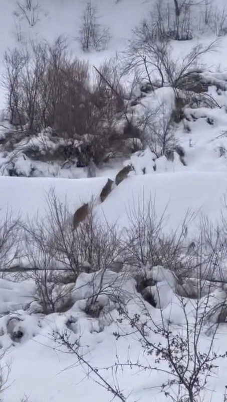 Sürü, bölgeden geçen bir vatandaşın cep telefonu kamerasına yansıdı. Kurtlar, karların arasında ilerledikten kısa bir süre sonra ise gözden kayboldular.