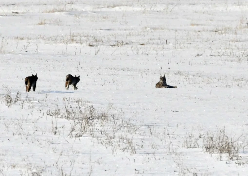 Bölgede etkili olan kar yağışı sonrası doğada yiyecek bulmakta zorlanan vaşak ailesinin köy kırsalına kadar indiği gözlemlendi. Bir süre kar üzerinde ilerleyen vaşaklar, daha sonra gözden kayboldu.