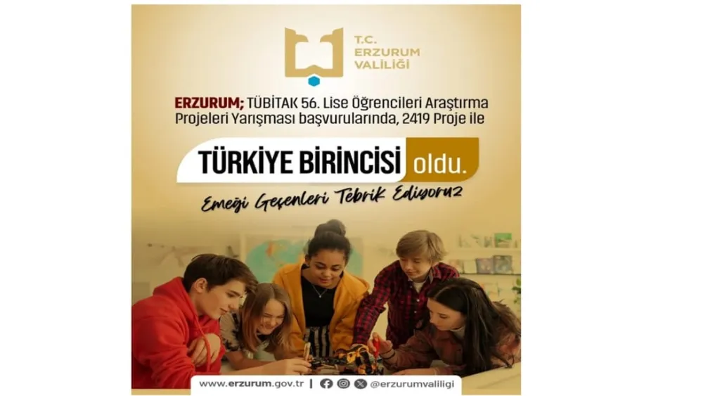 Bilimsel düşünceyi merkeze alan eğitim anlayışıyla öne çıkan Erzurum, bu önemli başarıyla birlikte araştıran, sorgulayan ve üreten öğrenci profiliyle Türkiye’ye örnek oldu. Elde edilen sonuç, il genelinde bilim ve araştırma kültürünün güçlü bir şekilde benimsendiğini bir kez daha gözler önüne serdi.