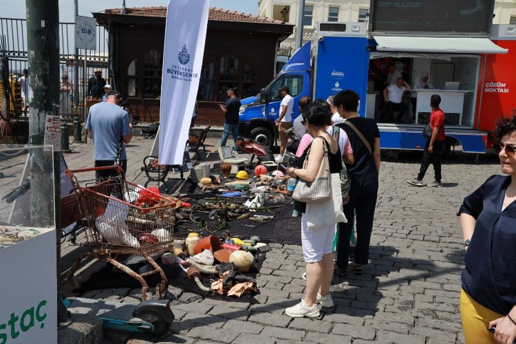 İBB, Çevre Haftası ve 8 Haziran Marmara Denizi Günü kapsamında Ortaköy Vapur İskelesi önünde farkındalık yaratan bir etkinliğe imza attı. İBB’ye bağlı profesyonel dalgıçlar, su altı temizliği yaptı. İstanbul Büyükşehir Belediyesi Deniz Hizmetleri Müdürlüğü ve İSTAÇ AŞ tarafından çevre bilincini artırmak amacıyla yapılan etkinlikte denizden çıkarılan atıklar sergilendi. Çıkarılan atıklar arasında yapı malzemeleri ve telefonların yanında bir de mermere bağlı muska vardı.