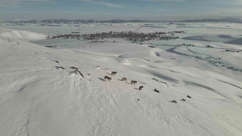 Erzurum'un Karayazı ilçesinde, gün içerisinde merkez yakınlarında bir kurt sürüsü görüntülendi. Vatandaşların dikkatini çeken sürünün en önünde, sürüyü koruyan ve yönlendiren alfa kurdun yer aldığı gözlemlendi.