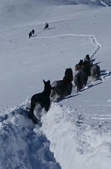 Bitlis’in Hizan ilçesinde, yaz aylarında hayvanlarını dağlık alanlarda otlatan köylüler, kış mevsiminin gelmesiyle birlikte at ve katırlarını köye geri getirmek istedi. Ancak bu plan, beklenmedik bir doğa olayıyla sekteye uğradı.