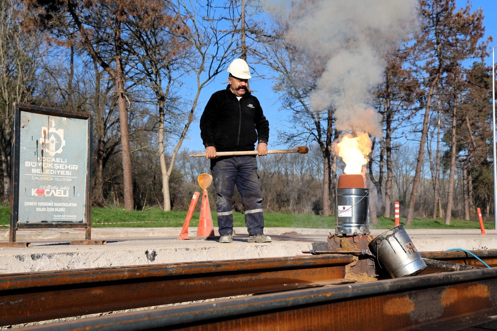"Kartepe Tramvay Hattı Projesi", İzmit ile Kartepe'yi demir yollarla buluşturacak. Çalışmalar, Vatan Caddesi ile Sakıp Sabancı Caddesi kesişiminden başlayarak Bağımsızlık Caddesi'ne kadar uzanan güzergahta planlanan takvim doğrultusunda ilerliyor. Raylar, gerekli ayarlamaların ardından Alüminotermit (Termit) kaynağı yöntemiyle birleştiriliyor.