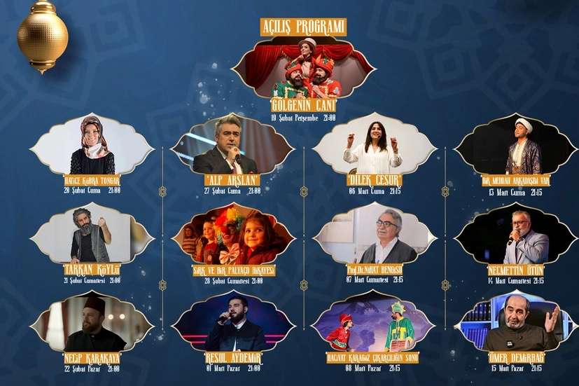 Ramazan boyunca her cuma, cumartesi ve pazar günü düzenlenecek programlarda Hatice Kübra Tongar, Tarkan Köylü, Necip Karakaya, Alper Arslan, Resul Aydemir, Dilek Cesur, Prof. Dr. Nihat Bengisu, Necmettin Nursaçan ve Ömer Demirbağ gibi isimler yer alacak. Çocuklara yönelik “Sirk ve Bir Palyaço Hikayesi” ile Hacivat Karagöz “Cırcırböceğin Sonu” ve “Bir Meddah Arkadaşım Var” gibi geleneksel gösteriler de takvimdeki yerini aldı. Söyleşiden tasavvuf musikisine, sahne sanatlarından çocuk programlarına uzanan bu geniş içerik, Ramazan akşamlarına derinlik katacak.