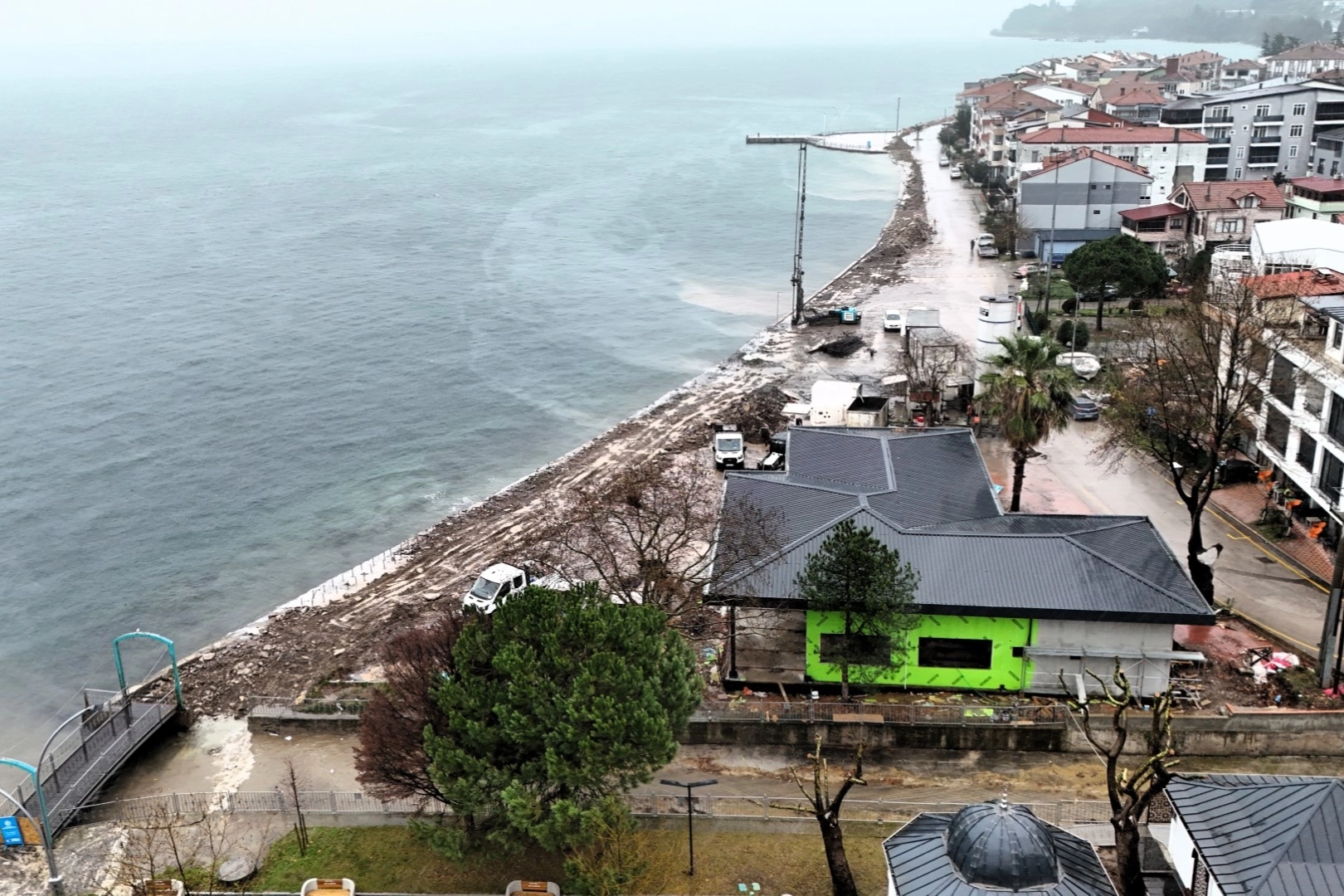 KOCAELİ (İGFA) - Hava muhalefeti nedeniyle yükselen deniz dalgaları, Ulaşlı Sahil yolunu ve çevredeki konutları su altında bırakabiliyordu. Vatandaşlardan gelen talepleri değerlendiren belediye, bu sorunu çözmek için 550 metre uzunluğunda bir dalga kırıcı set projesini hayata geçiriyor.