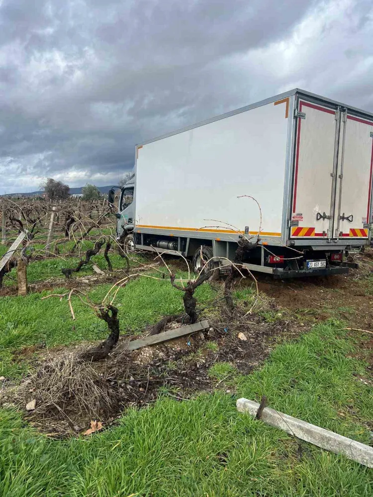 Sabıkalı yolda kamyon üzüm bağına girdi