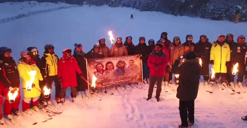 Sarıkamışlı kayakçılar, ellerinde meşalelerle pistlerden aşağıya inerek Bursa'da hayatını kaybeden arkadaşlarını andı, yapılan açıklamaların ardından arkadaşları için dua etti.