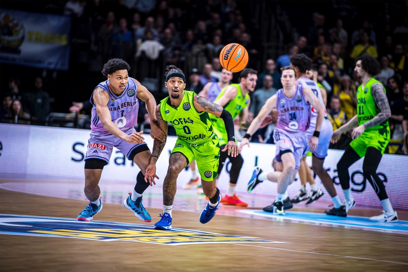 Basketball Champions League 2025-2026 sezonunda TOP 16 turunda mücadele veren TOFAŞ, UBER Arena'da Alba Berlin'i konuk etti. Alex Perez, Hugo Besson, Furkan Korkmaz, Yiğitcan Saybir ve Marek Blazevic'ten oluşan beşle başlayan Mavi Yeşilliler, ilk periyodu 11-18 önde kapattı.