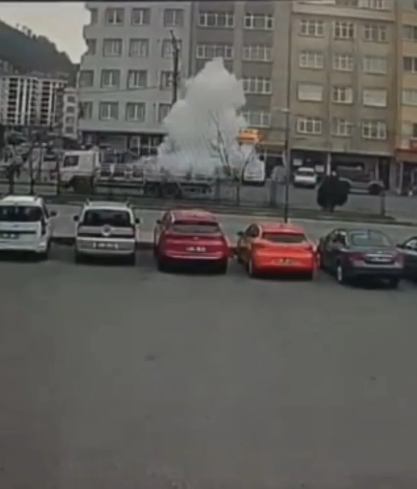 Trabzon’un Sürmene ilçe merkezinde bugün seyir halindeki bir tüp kamyonunun kasasında bulunan tüplerden biri büyük bir gürültüyle patladı. Patlamanın etkisiyle çevreye savrulan tüp parçaları, o sırada yan şeritte ilerleyen bir otobüsün üstüne düştü.