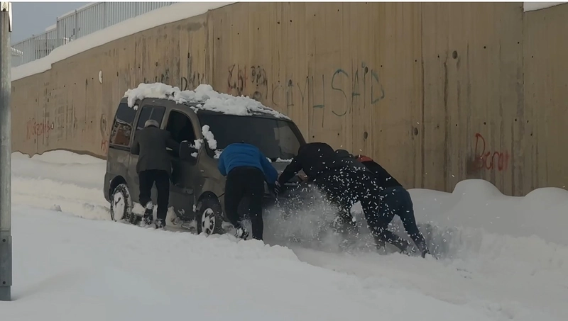 Durumu fark eden çevredeki vatandaşlar hemen yardıma koştu. Birlikte yapılan yoğun çabalar sonucunda, araç saplandığı yerden başarıyla çıkarıldı ve yoluna devam edebildi.